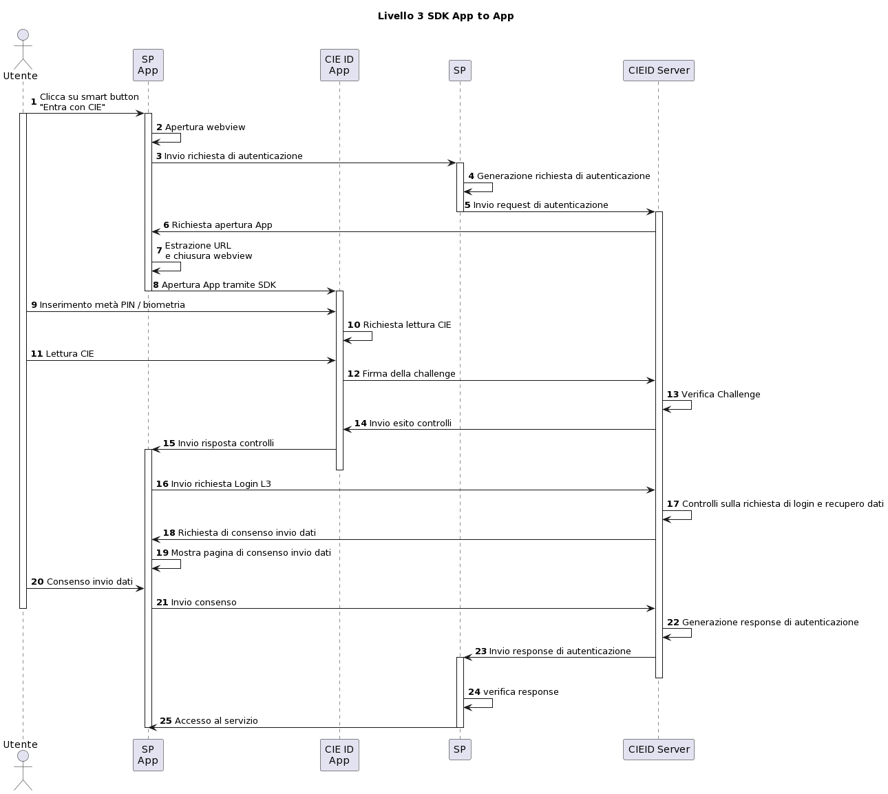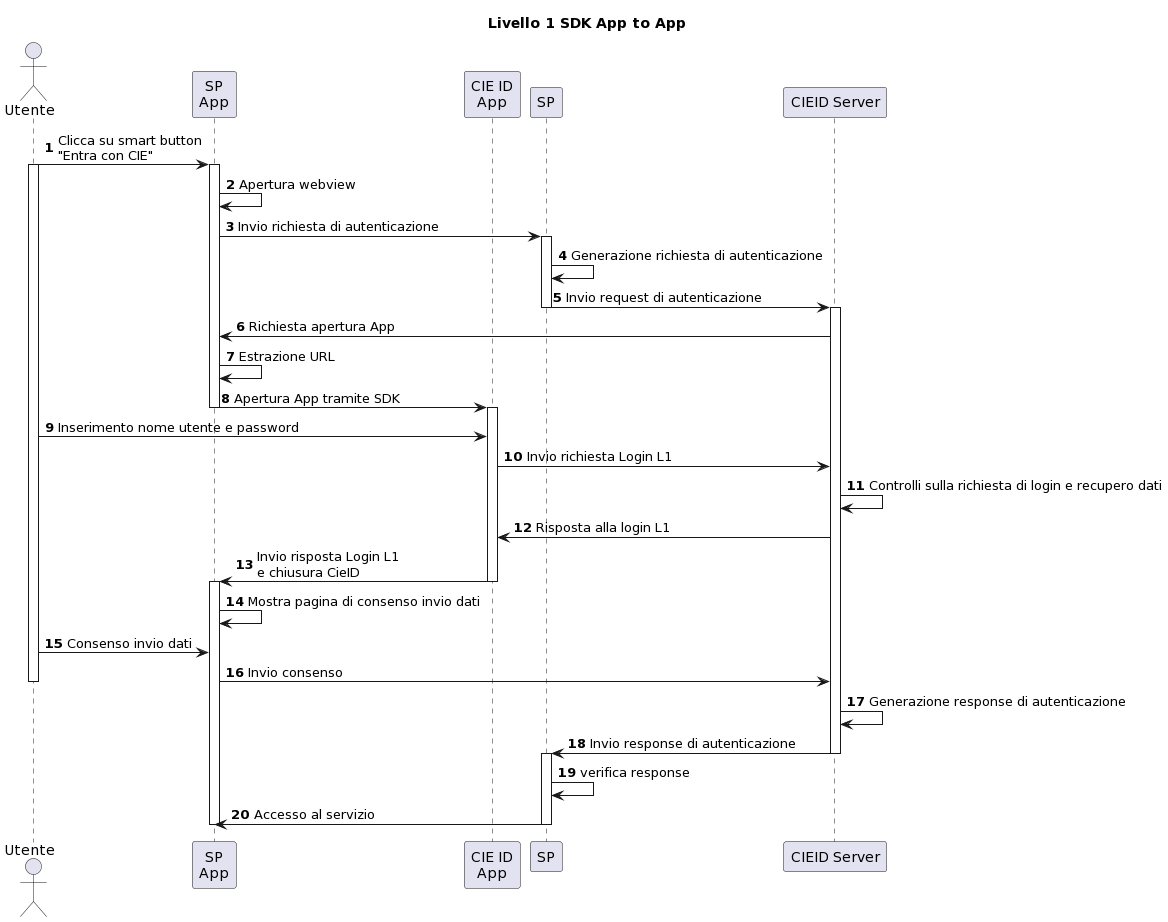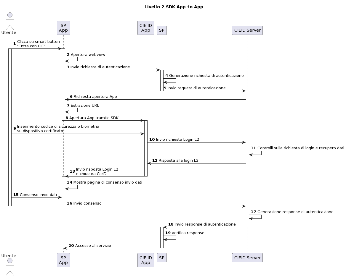 L'App del Service Provider, all'atto della richiesta di autenticazione dell'utente, reindirizza la richiesta all'App CieID che cura i dettagli la comunicazione e l'autenticazione con la CIE, mascherando tali aspetti all'applicazione chiamante.