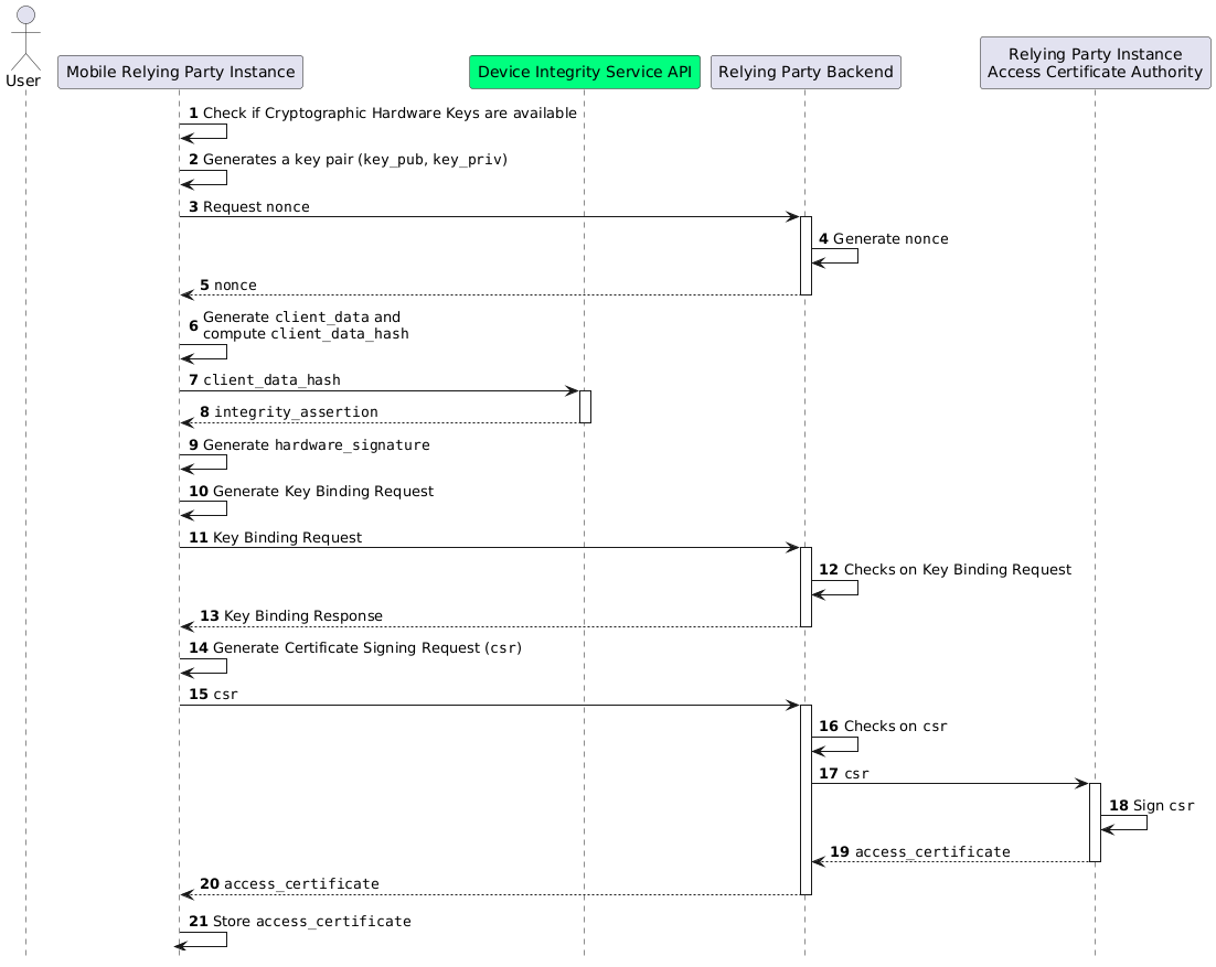 Fig. 10.12 Flow of the Mobile Relying Party Instance Access Certificate Issuance.¶