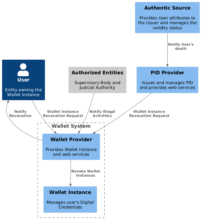 As shown in Fig. 10.5, other actors MAY trigger the Wallet Instance revocation process (WP_007–009):