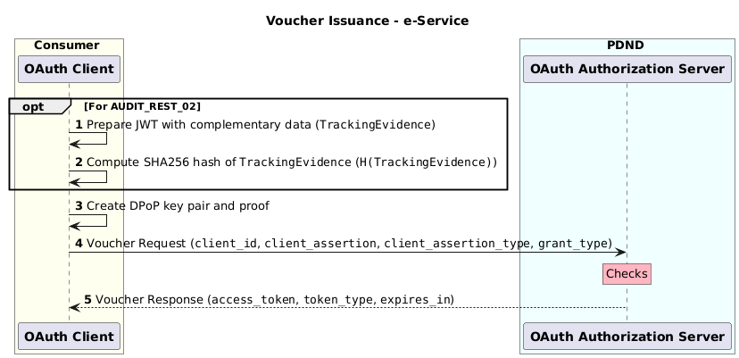 Step 4 (Voucher Request): The Consumer creates a Voucher Request and sends it to the PDND Authorization Server.