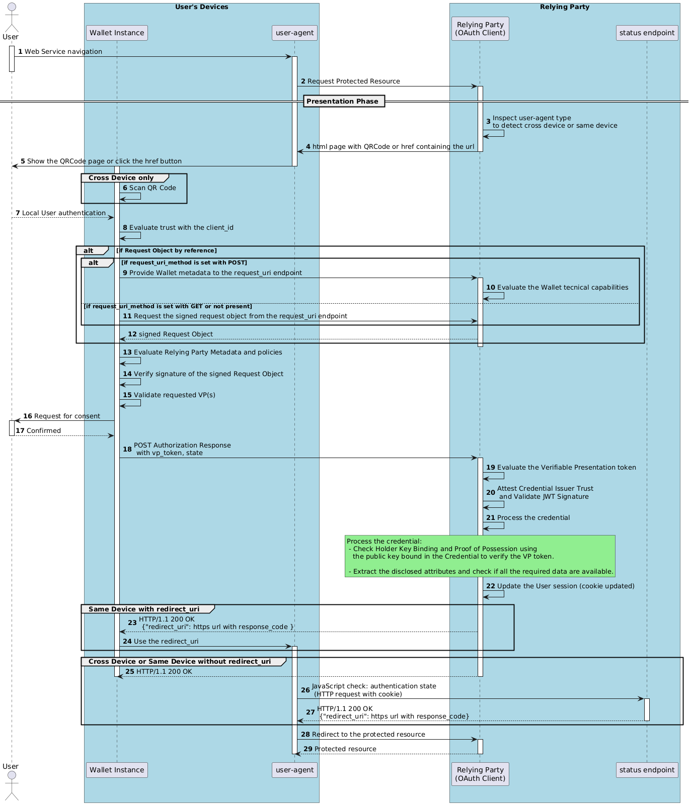 3. Relying Party Response: the Wallet Instance informs the User about the successful authentication with the Relying Party, and the User continues the navigation.
