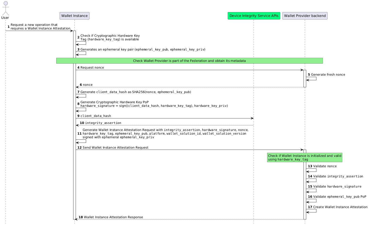 Fig. 10.4 Sequence Diagram for Wallet Instance Attestation acquisition.¶